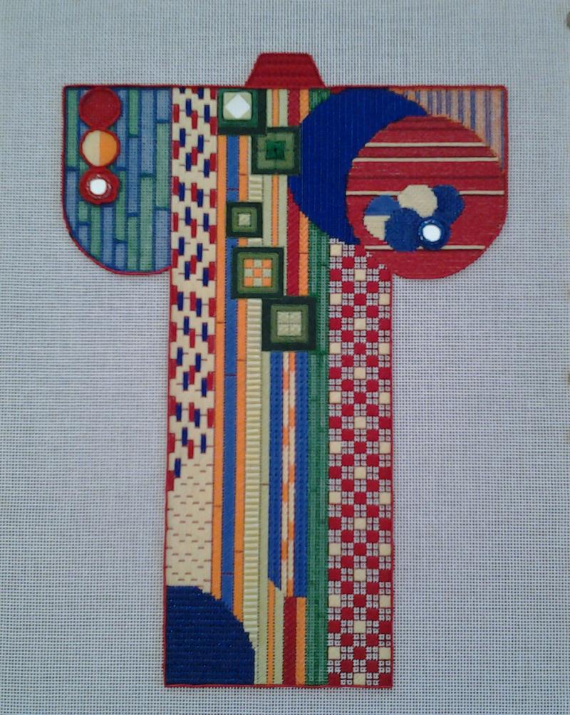 The Wright Kimono is my latest kimono, based on a selection of Frank Lloyd Wright windows, his teachings and ideas. This 2-day, intermediate level class will be fun and also, teach the “perfect circle” concept, some color theory, & some history. Stitches will be taught that enhance the vertical & circular design areas, including learning to stretch Flair & appliqué it to canvas and also, you will learn to attach mirrored tiles to the design. Design Size: 8” x 11 ½”. This is a 2-day class. Piece can be done as the original (above) kimono or as a rectangle.