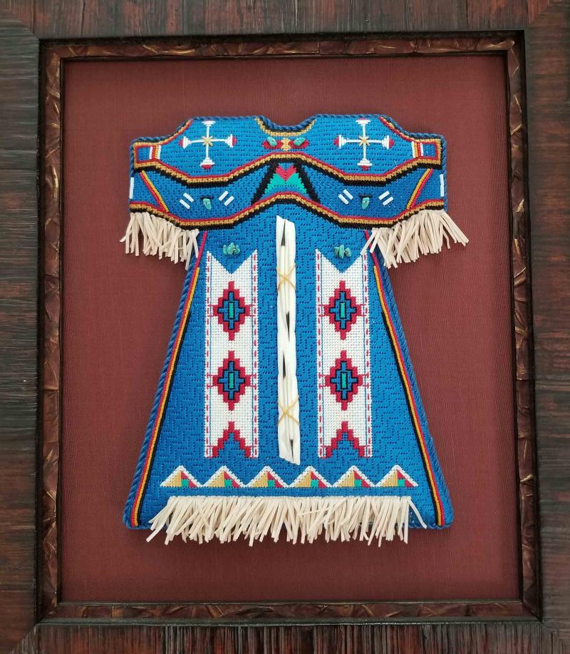American Plains The Plains Indians were some of America’s earliest artists. This rendition of an American Plains ceremonial dress demonstrates that artistry. From the intricate stitching to the delicate beading and finishing with the suede fringe, you will create your own American Plains masterpiece. Stitching with interesting threads and stimulating stitches you will fashion your own American work of art. Beading adds the detail expected on such a design, while the addition of a bit of real white deerskin and some porcupine quills adds more authenticity.