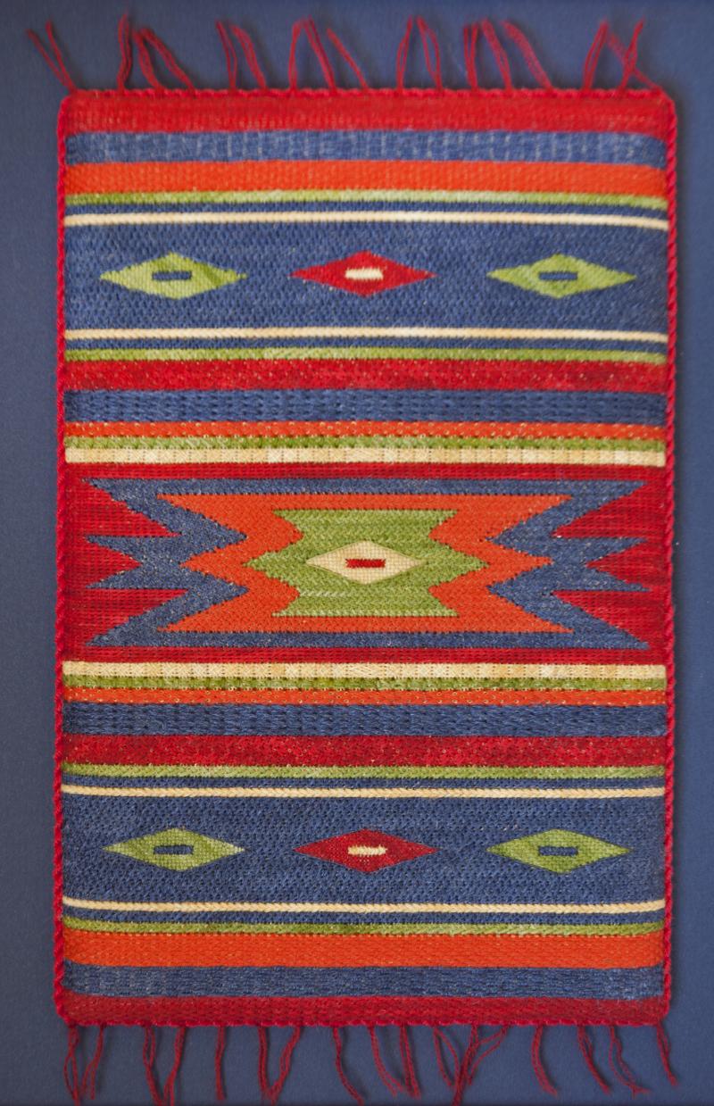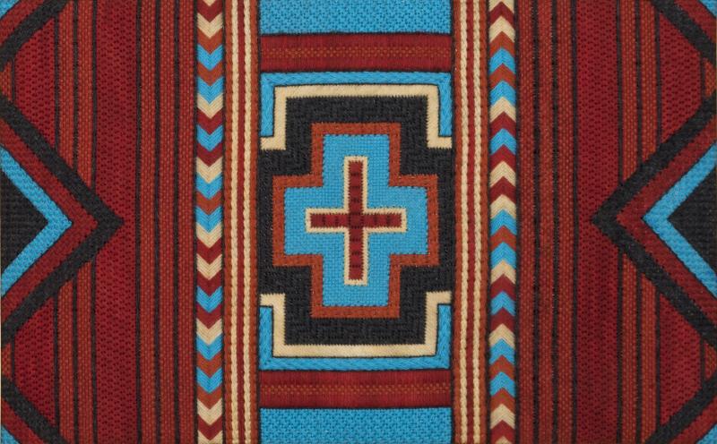This Navajo Blanket design is based on research of many different Navajo Blanket designs.  In this class we will explore the rich history & variety of designs that the Navajo Indians used to create their beautiful work.  The students can choose to recreate my design or to pick their own. This intermediate level canvas embroidery class on eggshell Congress cloth uses the rich colors of wool similar to the actual blanket materials.  Enough colors of wool threads will be included in the kit to finish my design or the student’s choice of design.  The stitches chosen help depict the woven texture of blankets.  Design Size:  5” x 7 ½”. This is a 2-day class.